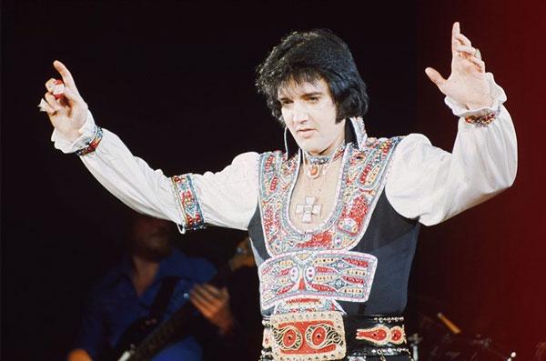 Nếu có ai đó đủ can đảm diện chiếc choker gộp từ màu ngọc lam, cam đến vàng và gắn đủ thứ lấp lánh bên dưới phối cùng chiếc áo liền quần rườm rà không kém, thì người đó chỉ có thể là ông vua nhạc Rock and Roll – Elvis Presley.