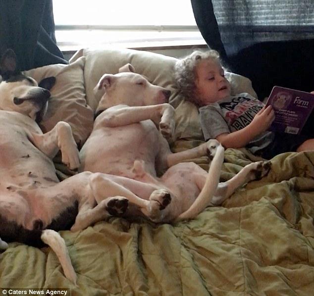 Hai chú chó cũng nghe truyện và đi ngủ...