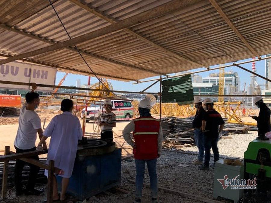 Theo thông tin ban đầu, vào thời điểm trên, một nhóm công nhân đang làm việc trên công trường xây dựng nhà xưởng phát hiện cần cẩu công trình rung lắc, rồi bất ngờ đổ sập.