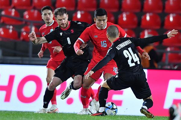 Thái Lan nhận trận thua choáng váng 0-8 trước Georgia hôm 12/10 (Ảnh: Siam Sport).