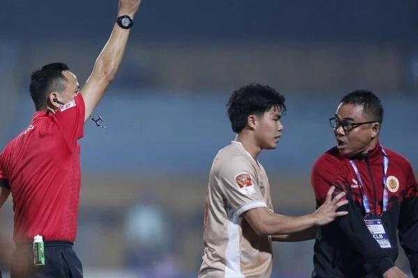Trọng tài Lê Tuấn Kiệt sau một lúc gục ở trên mặt sân, gượng dậy và phạt thẻ đỏ đối với Nguyễn Hồng Quang.