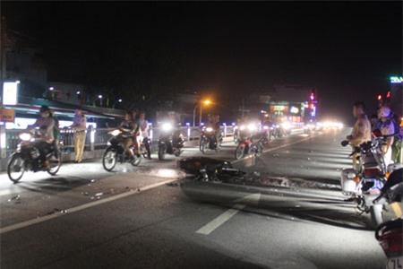 Tại hiện trường, hai phương tiện nằm cách nhau hơn 20 mét và cùng nằm ngay trên cầu vượt thép. Trên mặt đường vương vãi mảnh vụn vỡ của xe máy và ô tô. Trong đó, chiếc xe máy bị biến dạng, vỡ nát phần đầu.