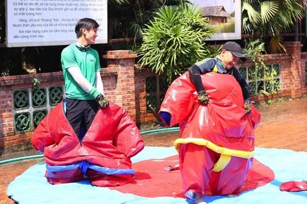 Đội Xanh lá “đụng độ” với hai tay đua mạnh nhất, bự nhất Nhật Anh và Baggio nhưng hai người đàn ông Xanh lá đã nhanh trí dùng “chiêu” để đẩy bật hai đối thủ mạnh “nhanh chóng mặt” và hoàn thành thử thách ngay trong lần đầu tiên.