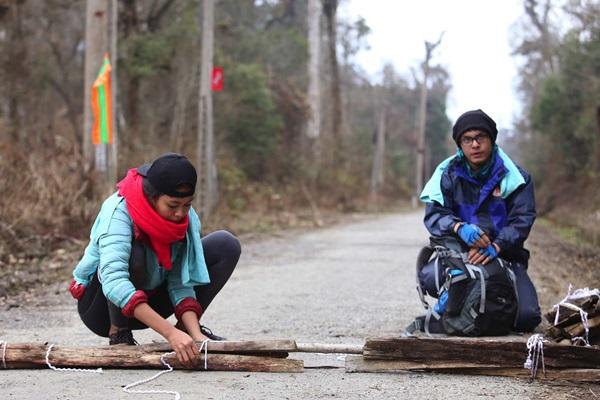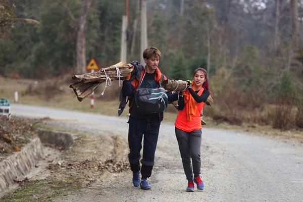 Cũng giống như Xanh ngọc, đội Tím của Song Ngư – Trúc Như cũng bị tụt xuống phía sau vì Song Ngư gặp khó khăn với những thanh củi buộc chưa chặt. Củi liên tục tuột và lỏng lẻo khiến Song Ngư luôn phải dừng lại xoay sở và nghỉ mệt khiến đội Tím dù đến nhiệm vụ ở top đầu nhưng nhanh chóng bị các đội khác vượt qua. Trong lúc đó, Trúc Như không những vừa gánh nhiều củi hơn mà còn gánh luôn balo cho đồng đội.