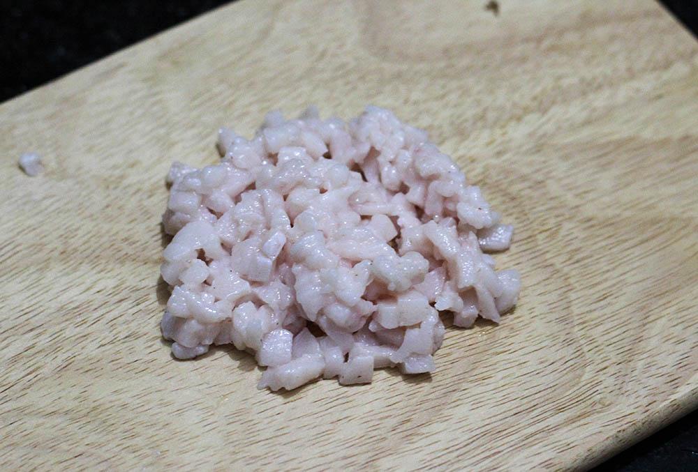 Mỡ lợn rửa sạch, thái hạt lựu nhỏ.