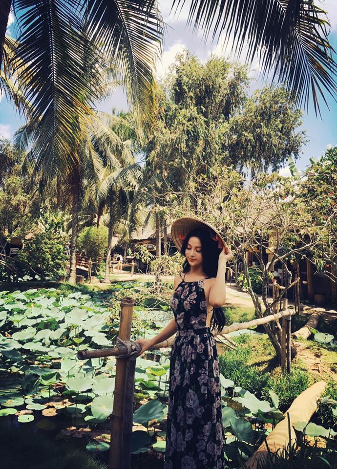 Không chỉ vi vu du lịch nước ngoài, cảnh đẹp sông nước miền Tây cũng là địa điểm đáng đặt chân được Huyền Baby lựa chọn trong dịp nghỉ lễ 10/3 này. Mới đây nhất, trên trang cá nhân của mình, Huyền Baby chia sẻ hình ảnh đội nón lá đẹp dịu dàng nhận được nhiều lời khen ngợi. Cùng với hình ảnh này Huyền Baby viết: "Em là người Việt Nam. Giống gái miền Tây không mọi người?"