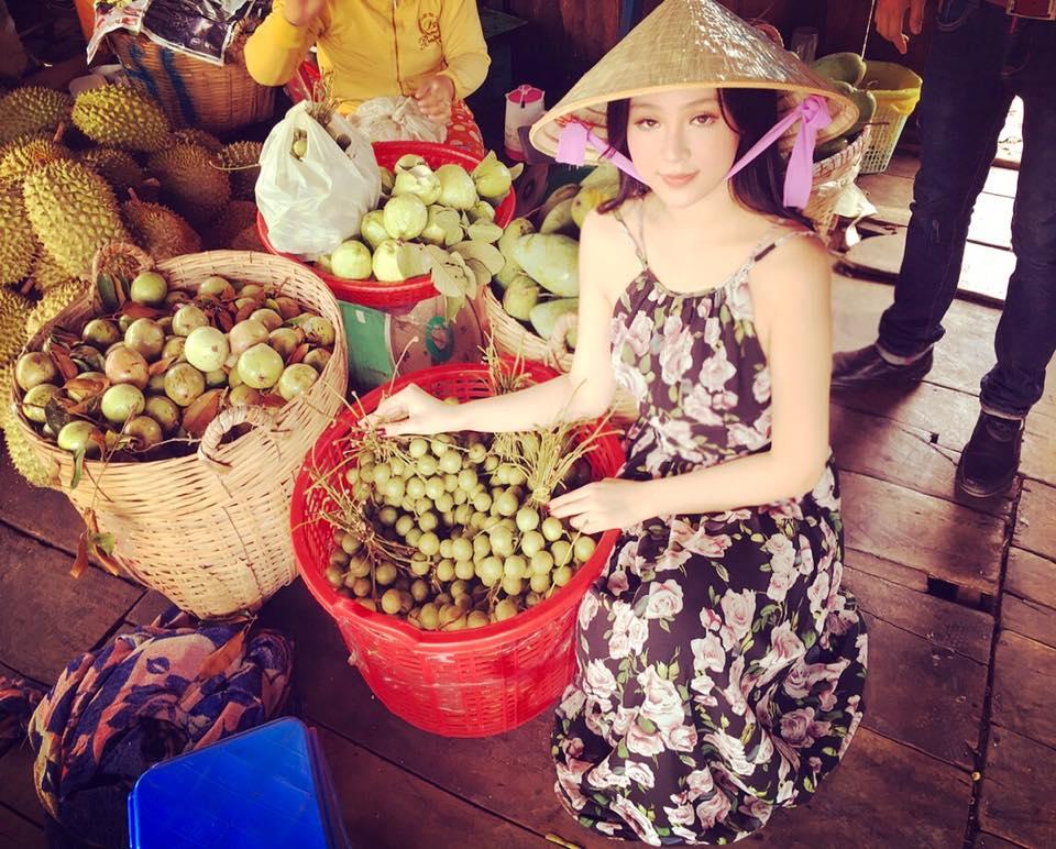 Cô nàng đi chợ nổi - nơi buôn bán các loại hoa quả, đặc sản. Đây cũng là một trong những nét đẹp văn hóa riêng của miền sông nước được khách du lịch trong và ngoài nước rất thích thú.