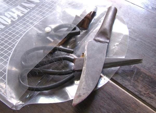 Dao và kéo của đối tượng Tĩnh dùng để khống chế nữ nhân viên Huỳnh Thị Cẩm Phương