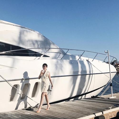 Hình ảnh Tuyết Trinh trong một lần đi du lịch trên du thuyền sang trọng