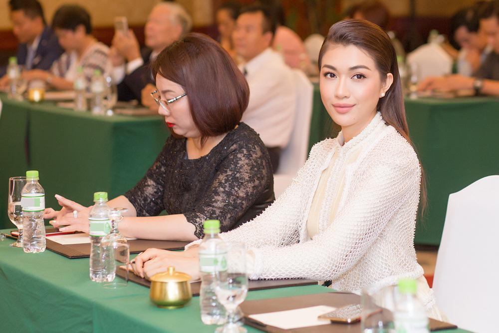 Ngày 6/6 vừa qua, Á hậu Hoàn vũ Việt Nam 2015 Lệ Hằng có mặt tại buổi họp báo tại TP.HCM. Ngay khi xuất hiện, người đẹp đã thu hút mọi ánh nhìn với hình ảnh thanh lịch, sang trọng trong chiếc áo dài của NTK Công Trí.
