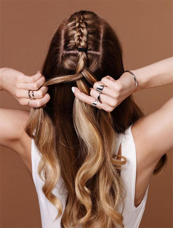 Tết cho phần tóc trên đỉnh, dọc ở giữa. Tuy nhiên, khi tết khoảng giữa đỉnh đầu,