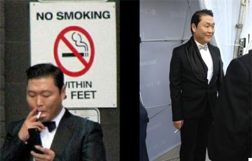 Hút thuốc là thói quen của rất nhiều người đặc biệt là đàn ông và không ngoại trừ những người nổi tiếng. Vào năm ngoái, trong chuyến quảng bá Gangnam Style ở Bắc Mỹ, Psy bị bắt gặp phì phèo điếu thuốc lá ở ngay tại nơi cấm hút thuốc. Bức ảnh lan truyền trên mạng và Psy bị chỉ trích vì hành động bất lịch sự, trái pháp luật nơi công cộng.