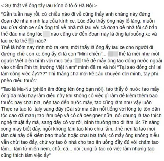 Ngay sau khi đoạn chia sẻ xuất hiện trên mạng, đa số đều tán dương hành động đầy ý nghĩa và chăm chỉ của anh chàng đến từ Ý này. Cách đây ít lâu, nhiều người vẫn còn nhớ nhóm người ngoại quốc chung tay dọn cống bẩn đã khiến nhiều người phải xấu hổ trước hành động đầy ý nghĩa này, và nay thì trên đường phố Hà Nội lại xuất hiện một hình ảnh khiến nhiều người không khỏi suy nghi.
