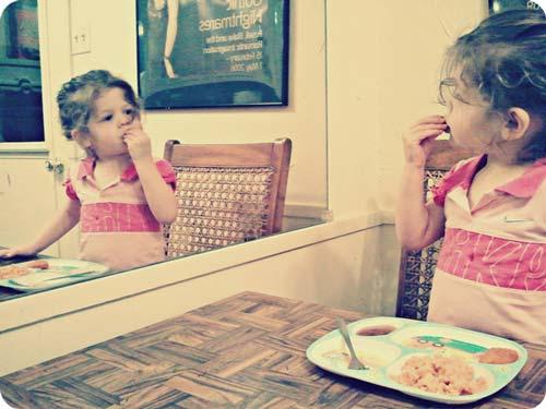Bạn có bao giờ ngồi trước gương và ăn? Đây là một hình thức giảm cân hiệu quả lắm đấy nhé. Liếc nhìn vào trong gương cho mọi người biết còn nhiều thứ hơn cả dáng vẻ cơ thể họ, bởi thế kiểm soát lượng đồ ăn nạp vào tốt hơn. Những người thường xuyên ăn trước gương giảm 1/3 lượng thức ăn so với những người khác.