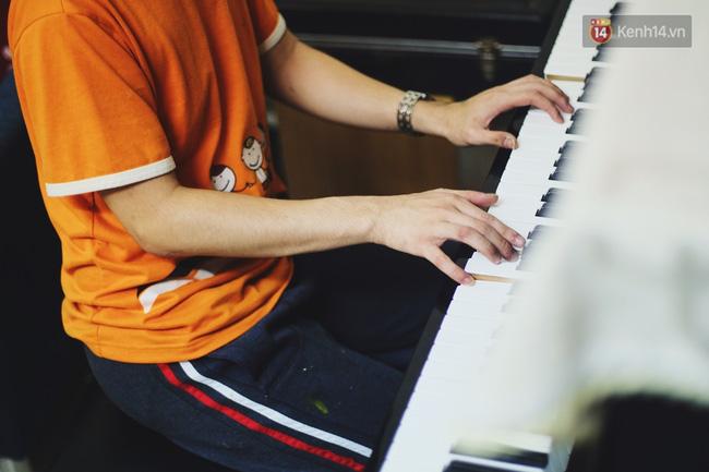 Clip Hiếu chơi đàn piano ngẫu hứng khi chưa chỉnh hợp âm.
