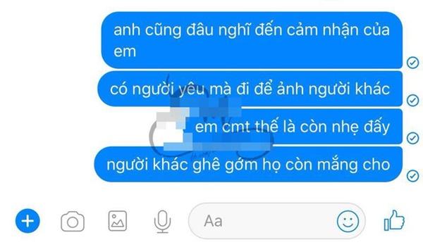 Bạn trai đã dùng cách giải thích khá khó chịu để nói về lí do tại sao để ảnh người khác làm hình đại diện. Thậm chí, anh ta còn dùng những câu như: "Chưa ai làm gì em cả, chưa có cưới xin gì, em không có quyền bảo anh làm gì cả".
