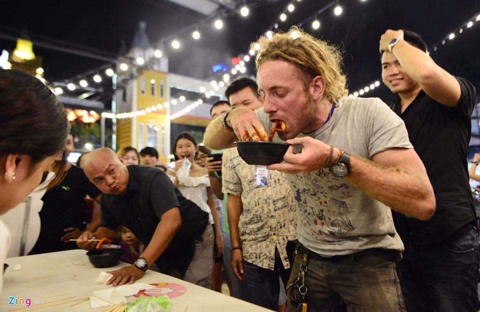 Trong buổi giao lưu, chia tay đầy cảm xúc, gần gũi, anh chàng người Italy tham gia cuộc thi ăn mì nhanh.