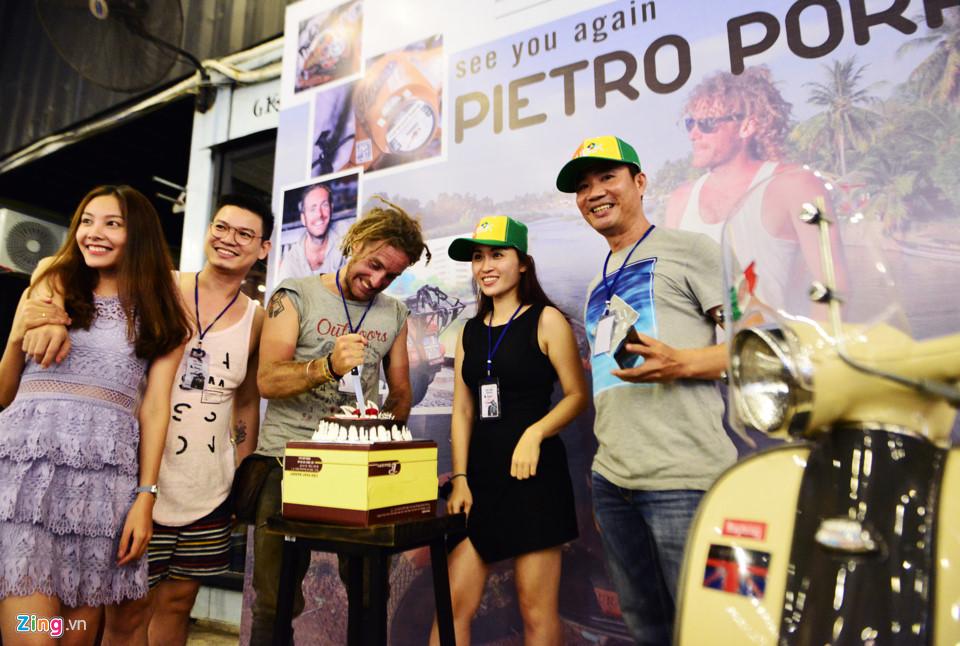 Tối 15/7, trước ngày về nước, Pietro Porro được CLB xe cổ và Rubik Zoo tổ chức buổi chia tay với sự tham gia của những người yêu loại xe này. Bạn bè anh cho biết Porro muốn ở lại chơi tiếp ở TP HCM nên ngày 19/7 mới về nước.