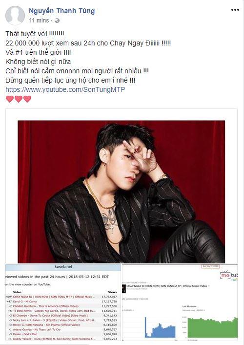 Sơn Tùng vui mừng với những kỷ lục mà mình đạt được