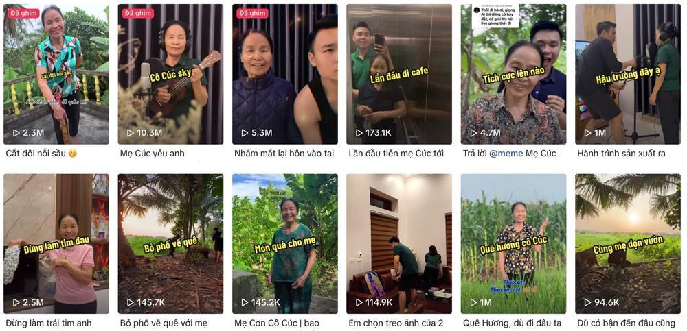 Các video của bà Cúc - do chính con trai là Nhật Bảo Luân (23 tuổi) thực hiện - thu hút hàng triệu view và hàng nghìn lượt tương tác. Kênh Tiktok của hai mẹ con hiện có gần 125 nghìn người theo dõi và 1,5 triệu lượt thích.