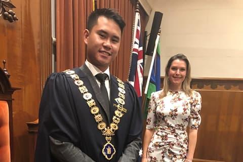 Thị trưởng 22 tuổi cảm ơn sự ủng hộ từ gia đình cũng như cảm ơn những người lớn tuổi trong cộng đồng thành phố Maribyrnong đã đặt niềm tin vào thế hệ trẻ của anh.