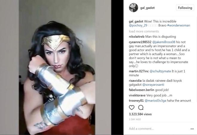Paolo Ballesteros đã gây bão mạng với clip hóa trang thành Wonder Woman thu hút hơn 3 triệu lượt xem.