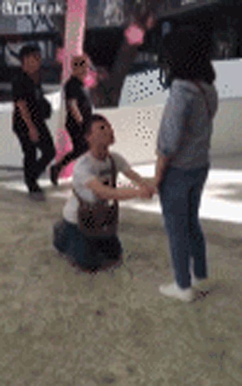 Clip chàng trai quỳ gối xin lỗi bạn gái tại trung tâm thương mại.