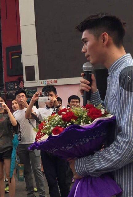 Nhờ sự giúp đỡ của của bạn bè và những người đi qua tại một trung tâm thương mại thuộc khu vực trường Đại học Quảng Châu, chàng trai treo băng rôn với khẩu hiệu: ‘Mộc Mộc, cả đời có em’, còn trên mỗi quả bưởi anh chàng còn cẩn thận viết lên dòng chữ ‘Anh mãi yêu em” và ‘Em là tất cả lý do khiến anh hạnh phúc’.