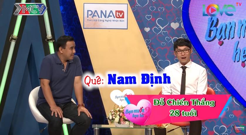 Chàng trai đeo kính cận có vẻ thư sinh, hiền lành xuất hiện trong tập 375 "Bạn muốn hẹn hò" là Đỗ Chiến Thắng, 28 tuổi, làm thiết kế, quê gốc ở Nam Định nhưng đang làm việc tại Bình Dương.