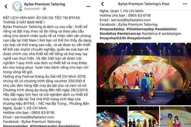 Đăng hình ảnh áo dài của các NTK khác, nhưng Byfas lại quảng cáo về các dịch vụ may đo của mình. Thương hiệu còn chia sẻ rằng các dịch vụ chăm sóc khách hàng chuyên nghiệp của mình luôn được tư vấn bởi các stylist và những nhà thiết kế nổi tiếng.