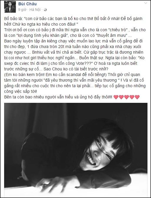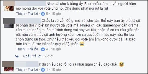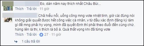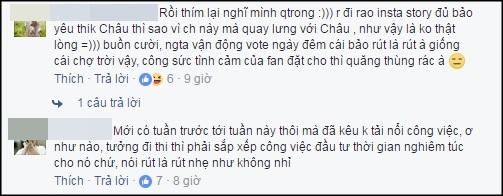 Những dòng chia sẻ của nàng hotgirl khiến các fan hâm mộ, những người đã bỏ nhiều công sức ra vote đưa Châu Bùi lọt vào top 3 khá bức xúc. Nhiều fan cho rằng việc Châu Bùi thích thì đăng ký tham gia, rồi lại đột ngột xin rút giống như những cô nàng hotgirl đầy chiêu trò khác, không hề nghiêm túc khi đầu tư vào cuộc thi này.