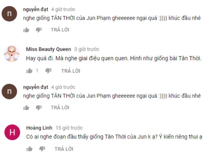 Nói về sự giống nhau trên, nam nhạc sĩ chia sẻ: "Thật sự khi nghe bài hát 'Tân thời' thì Khoa cũng thấy phần đầu bài hát cũng có những nét tương đồng về giai điệu. Nhưng xét về góc độ có đạo nhạc hay không thì mọi người nên xem xét về các khía cạnh khác như giai điệu, ca từ, cách phối khí,... chứ không phải cứ nghe giống giống nhau là liền nhận định ngay đó là đạo nhạc".
