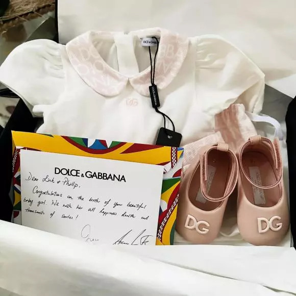 Ngày em bé chào đời, cựu hot girl Hà thành cũng khiến hội chị em lóa mắt, liên tục vào "xin vía" khi khoe loạt quà người thân, bạn bè tặng cho Caroline. Trong đó có cả những món đồ thời trang đến từ những thường hiệu đắt đỏ.