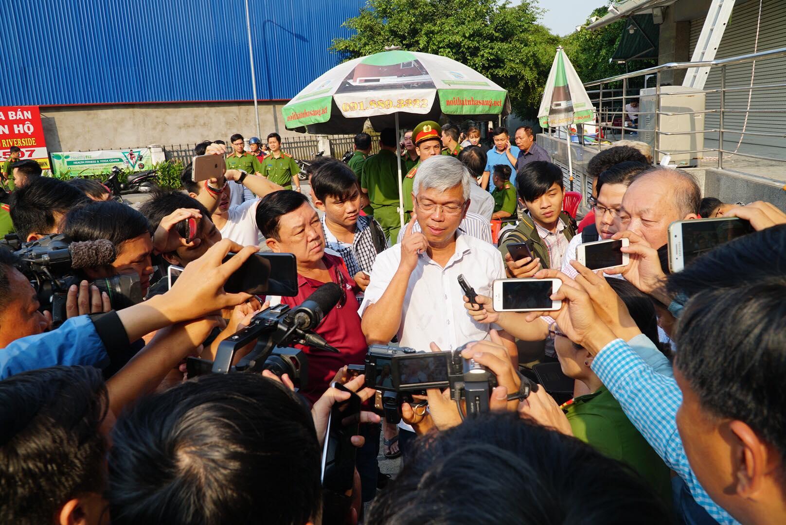 7h45: Có mặt tại hiện trường vụ cháy sáng nay, Chánh văn phòng UBND.TPHCM Võ Văn Hoan đã tổ chức họp báo nhanh với các phóng viên.