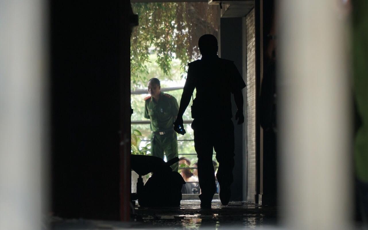 Cảnh sát khám nghiệm hiện trường vụ cháy