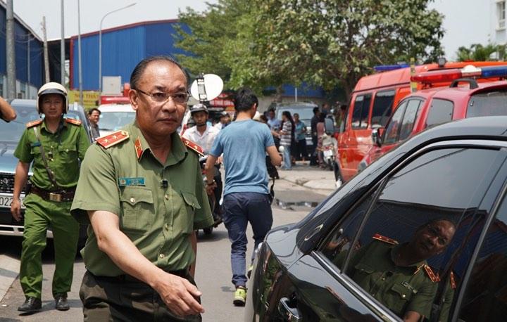 10h45: Thứ trưởng Bộ Công an, Trung tướng Bùi Văn Thành đến kiểm tra trực tiếp hiện trường. Trung tướng Lê Đông Phong, Giám đốc Công an TP HCM cũng có mặt.