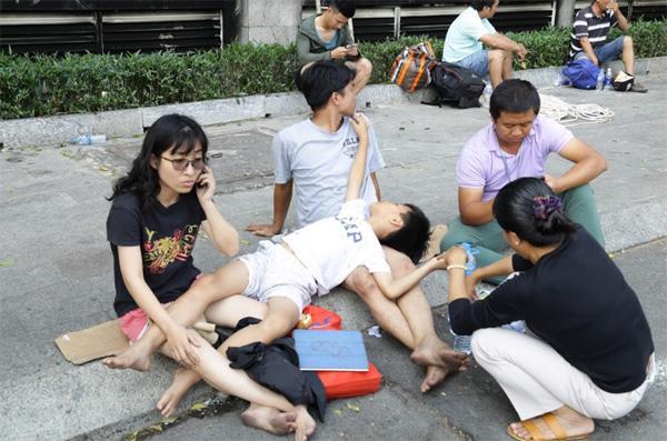 Theo một nguồn tin, một số người dùng rèm, chăn buộc thành dây để đu xuống đất. Rất không may, trong số đó có bà L.L.B.P bí thư kiêm chủ tịch UBND phường Nguyễn Thái Bình, quận 1 bị trượt chân rơi xuống đất và đã tử vong.