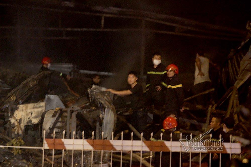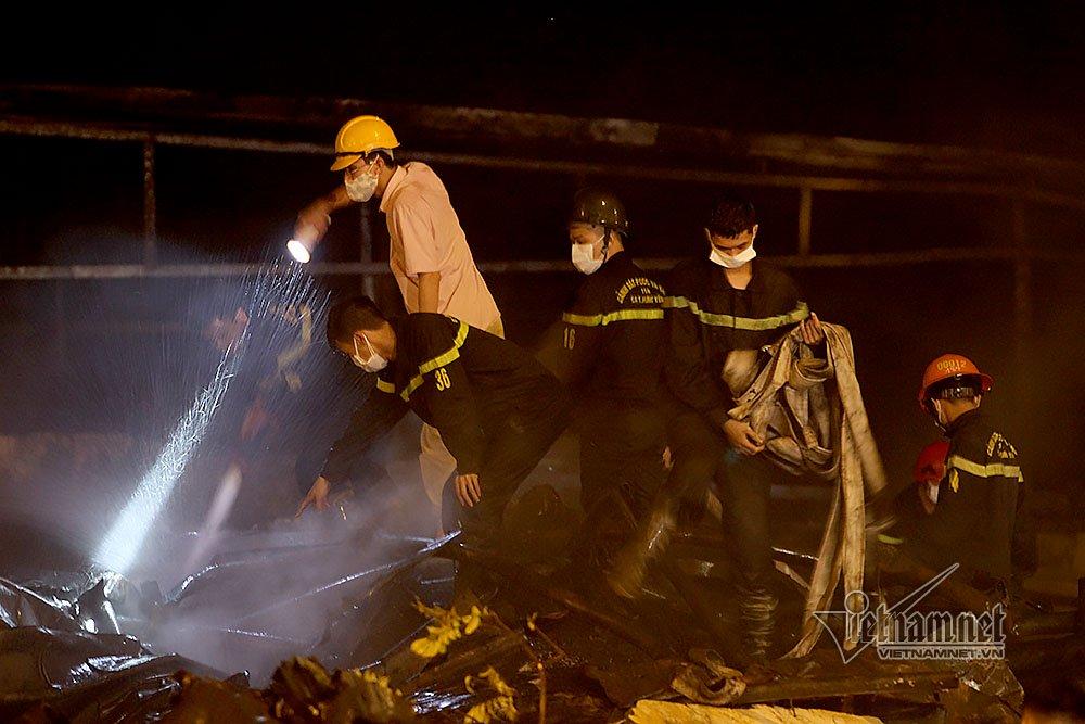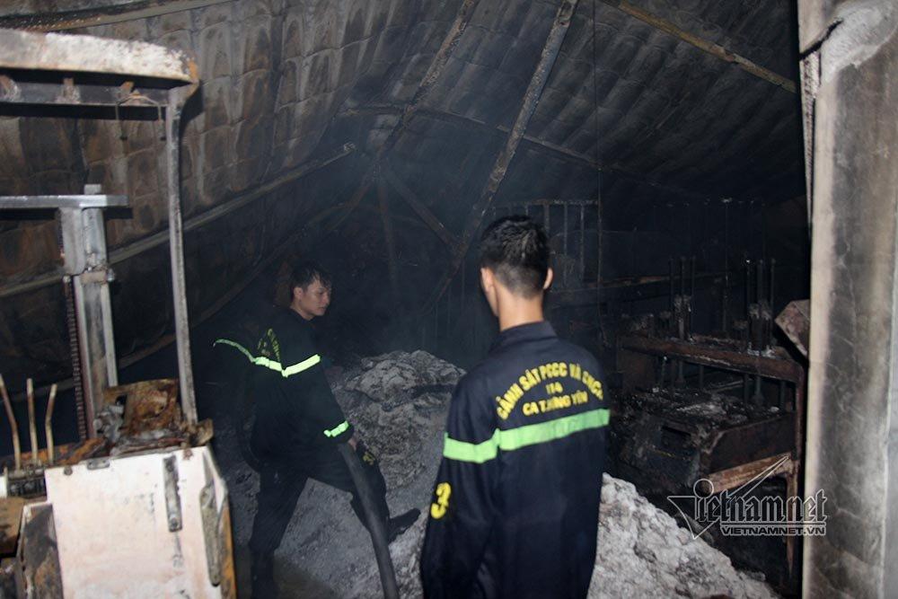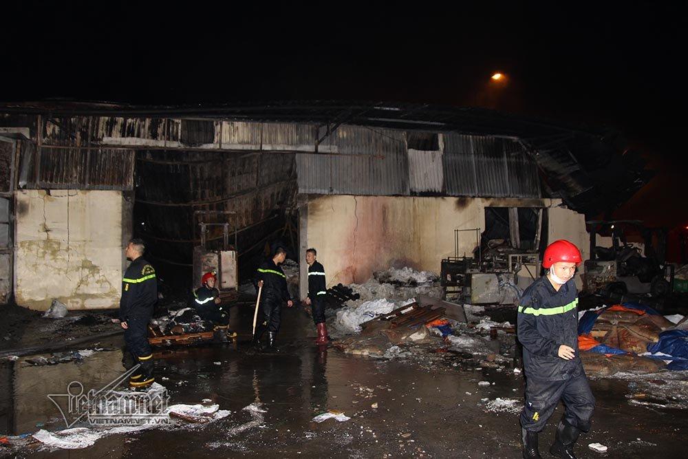 Đến 2h sáng nay, công việc dập lửa, làm mát vẫn tiếp tục để ngăn ngọn lửa bùng phát trở lại. Hàng chục chiến sĩ cảnh sát PCCC tỉnh Hưng Yên đi sâu vào hiện trường, dùng vòi phun nước làm mát các khu vực dễ bén lửa trở lại.