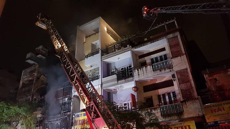 Lửa gặp các vật liệu dễ cháy nhanh chóng bùng lên, lan rộng bao trùm toàn bộ 4 tầng căn nhà. Lửa cháy lan sang các ngôi nhà lân cận khiến 3 căn bị ảnh hưởng. Trong đám cháy thi thoảng có nhiều tiếng nổ.