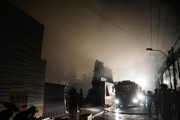 Khói bốc nghi ngút kèm ngọn lửa đỏ rực. Phát hiện sự việc, lực lượng bảo vệ, nhân viên đang làm việc tại xưởng hô hoán nhau dập lửa nhưng bất thành.