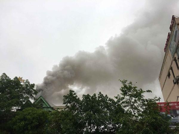 Đến 7h30, lửa đã hoàn toàn tắt nhưng phía trên cao toà nhà karaoke vẫn đang bốc khói nghi ngút