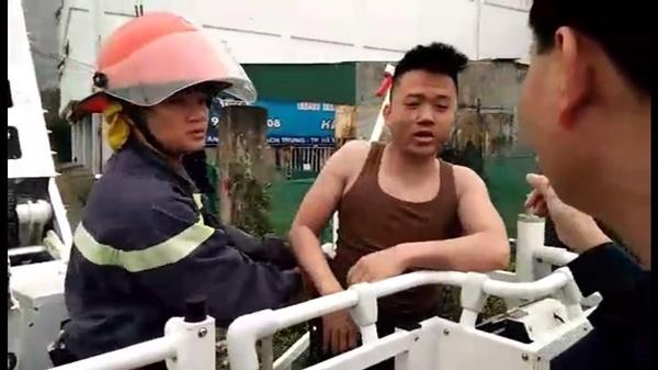 Một nhân viên karaoke được lực lượng cứu hộ dùng thang cứu ra khỏi toà nhà