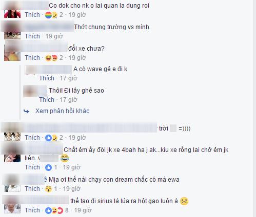 "Thời buổi này chạy số ra đường có quê mùa hay lúa không vậy, chạy xe số chở gấu làm gấu mất mặt khi ra đường không vậy? Chứ hôm nay mình chở gấu mới quen đi chơi bữa đâu tiền gấu mình nói chạy xe này lúa quá anh ơi. Chạy vòng vòng người ta nhìn quê lắm. Xong kêu mình về đổi xe khác đi rồi mới chịu, đổi hay mượn được tay ga thì càng tốt.