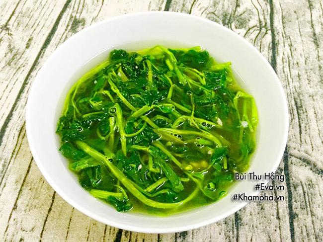 Rau muống nhặt ngọn non, rửa sạch, để ráo. Thịt vai băm nhỏ xào chín. Cho một bát to nước vào nồi, cho thịt vào đun sôi. Nêm nếm gia vị cho vừa, cho rau vào đun chín mềm là được.