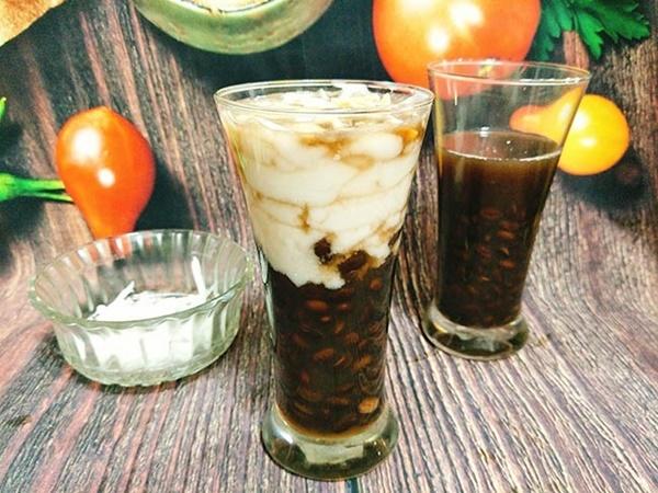 - Bước 5: Chè đã nguội thì múc ra ly hoặc bát sau đó bạn múc nước cốt dừa vào cùng, lượng cốt dừa ít hay nhiều tùy theo sở thích. Cuối cùng bạn rắc thêm dừa bào sợi, lạc giã dập lên trên rồi thưởng thức.