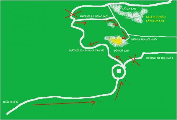 Từ Đà Lạt bạn đi TL723 hướng về xã Đạ Sar. Qua cầu Đạ Sar khoảng hơn 1km sẽ gặp đường bê tông mới (đầu đường có biển giới hạn tốc độ 10km). Sau khi đi hết đường bê tông mới thì rẽ phải, đi 100m gặp tổ dân phố thì rẽ vào đường đất đá bên trái tổ dân phố đến nghĩa trang nhỏ ở đầu đồi, sau đó bạn đi bộ xuống khoảng 1km là đến.