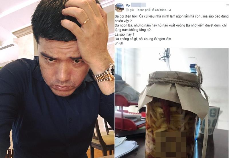 - Dạ ngon ba, nhưng năm nay hũ nào xuất xưởng ba nhớ kiểm duyệt dùm, chỉ tặng nam không tặng nữ.
