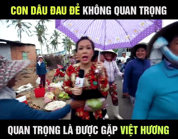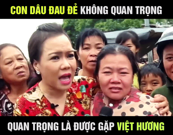 "Con dâu đang đau đẻ mà bỏ đi luôn giờ nó đẻ ở nhà cái là ráng chịu. Xong rồi chạy về nhà đi kẻo nó đẻ. Ra xe về nhanh coi con nhỏ đã đẻ chưa", lời giục giã của Việt Hương khiến người dân có mặt được phen cười bò.