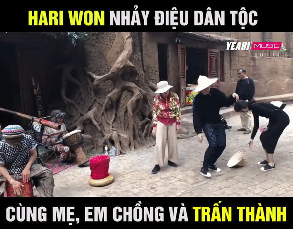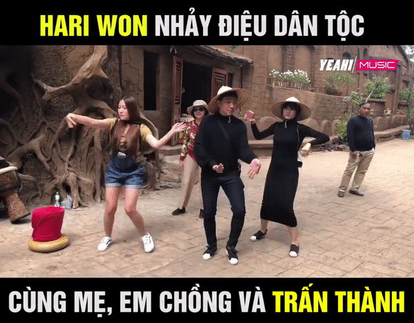 Chưa hết, nữ ca sĩ gốc Hàn còn lôi kéo mẹ và em gái Trấn Thành nhập cuộc. Trên nền nhạc ca khúc Em yêu anh như yêu câu ví dặm, bộ ba thành viên "quẩy" tưng bừng không theo bất cứ hàng lối nào. Quá bất lực trước độ "nhây" của bà xã, Trấn Thành đành ngậm ngùi hùa theo.
