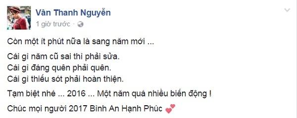 Khoảnh khắc giao thừa năm 2017 đã điểm, mở ra một năm mới hứa hẹn nhiều niềm vui và may mắn cho tất cả mọi người. Trong khoảnh khắc giao thừa thiêng liêng, đông đảo nghệ sĩ đã chung vui chúc mừng năm mới.